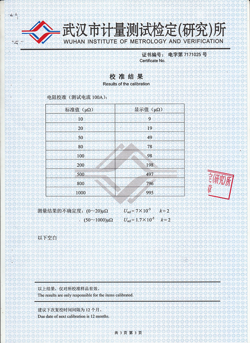 | 分辨率 | 0~99.99 | 0.01μΩ |