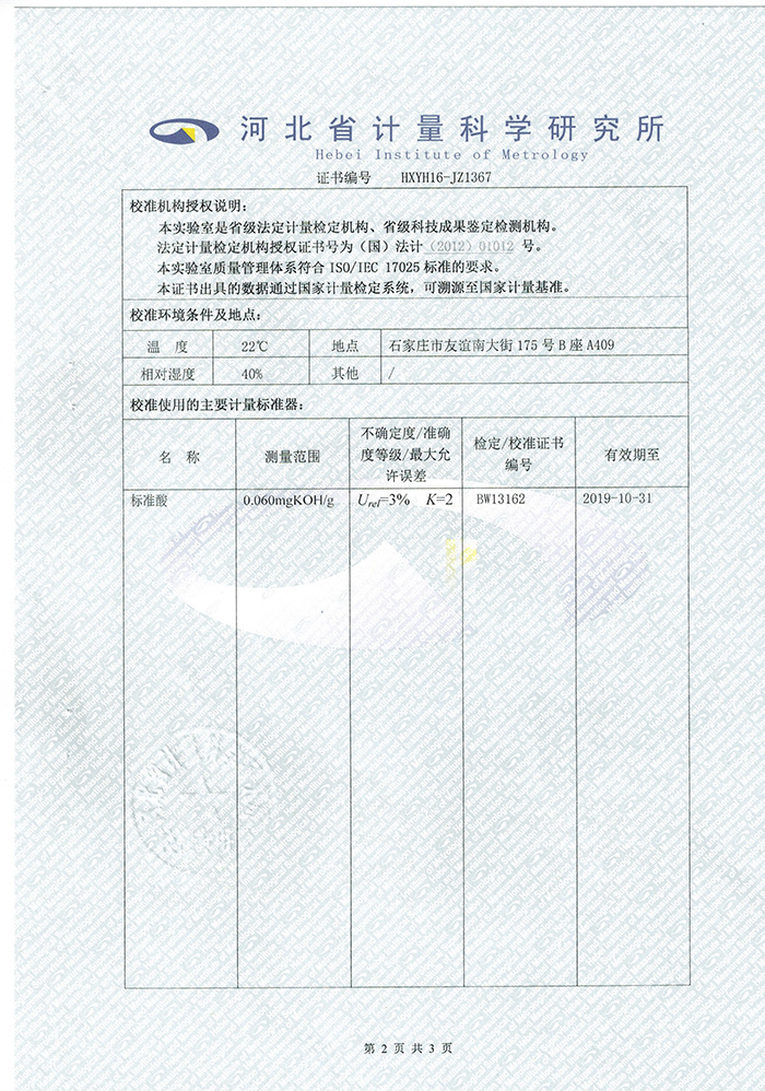 測量準確度  酸值在0.001~0.100 mgKOH/g之間為 ± 0.003 mgKOH/g